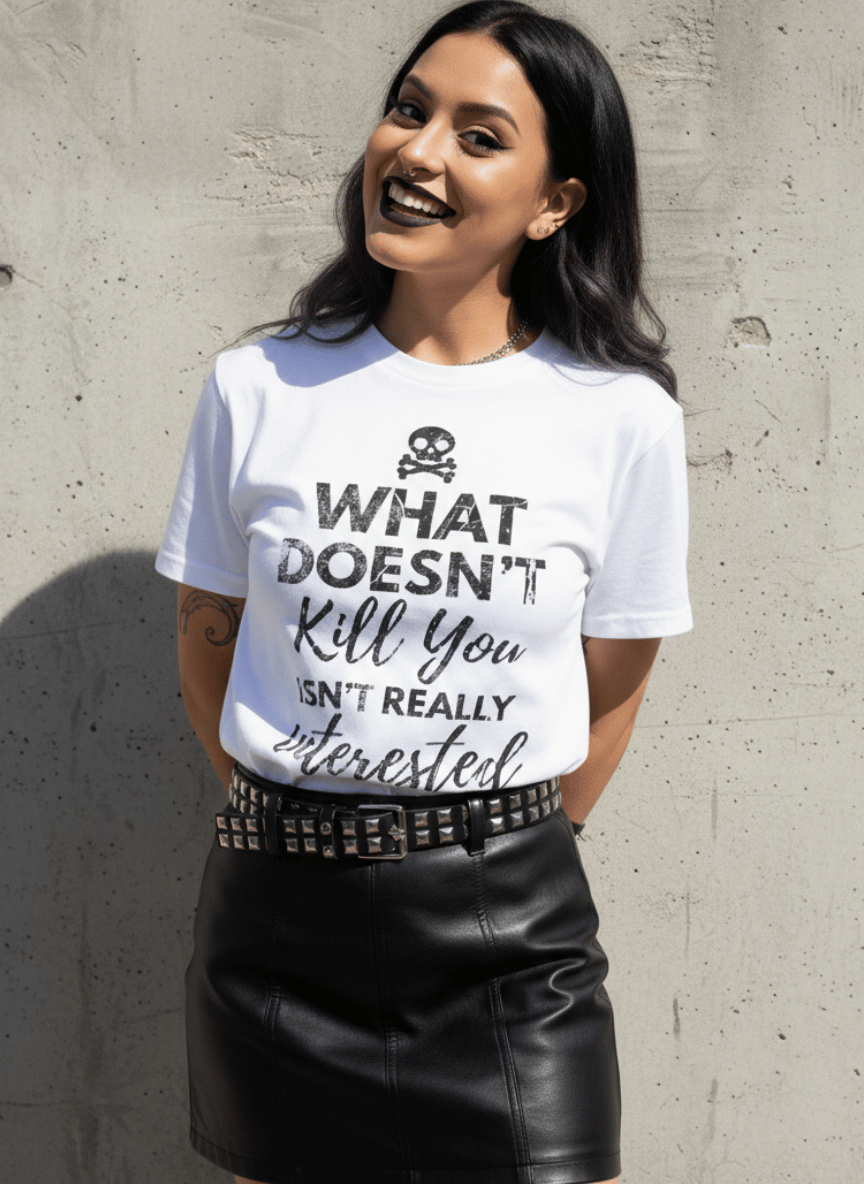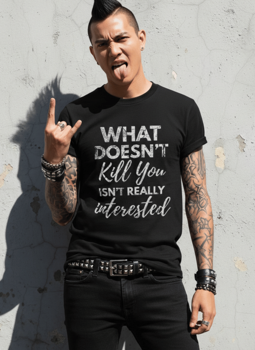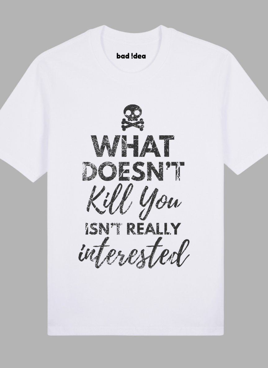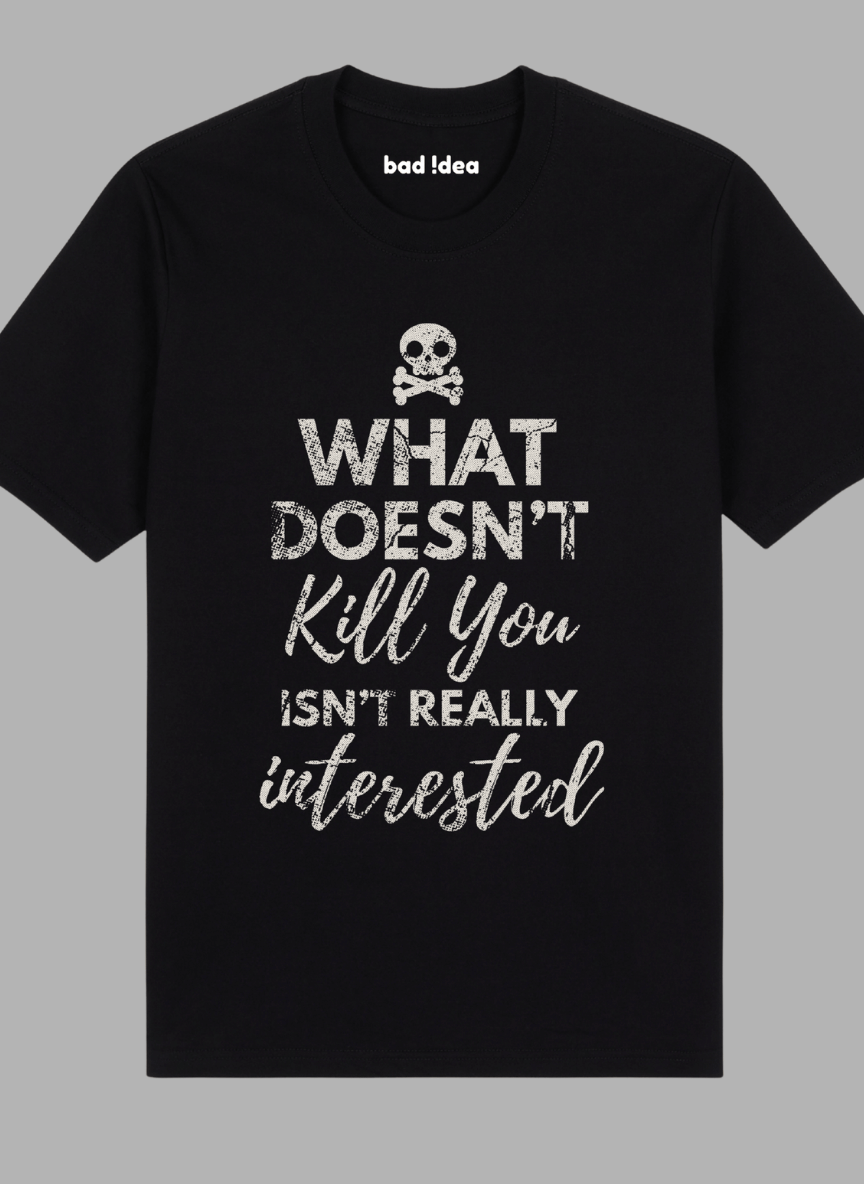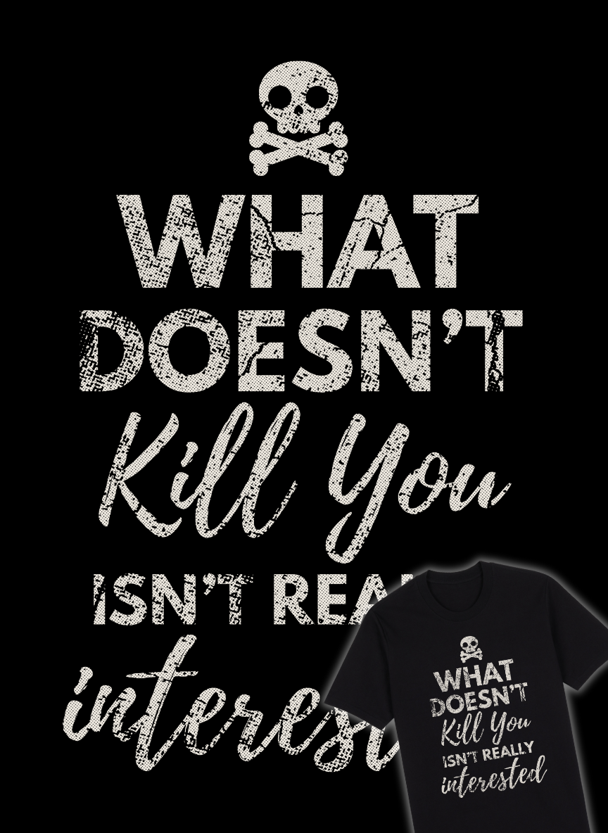 What Doesn’t Kill You: Text graphic of the words “What Doesn’t Kill You Isn’t Really Interested.”